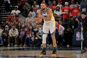 体育资讯4月18日讯 NBA附加赛,勇士半场45-50落后于太阳。